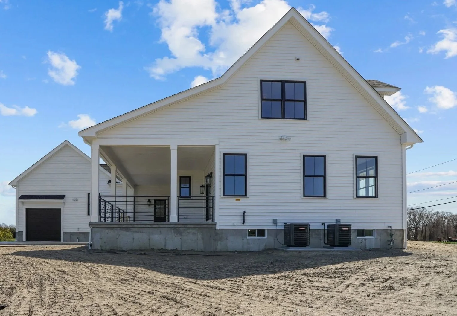 Set across from Four Town Farm, the home embraces a coastal modern farmhouse aesthetic with Cape-style influence—balancing clean architectural lines with thoughtful detailing.