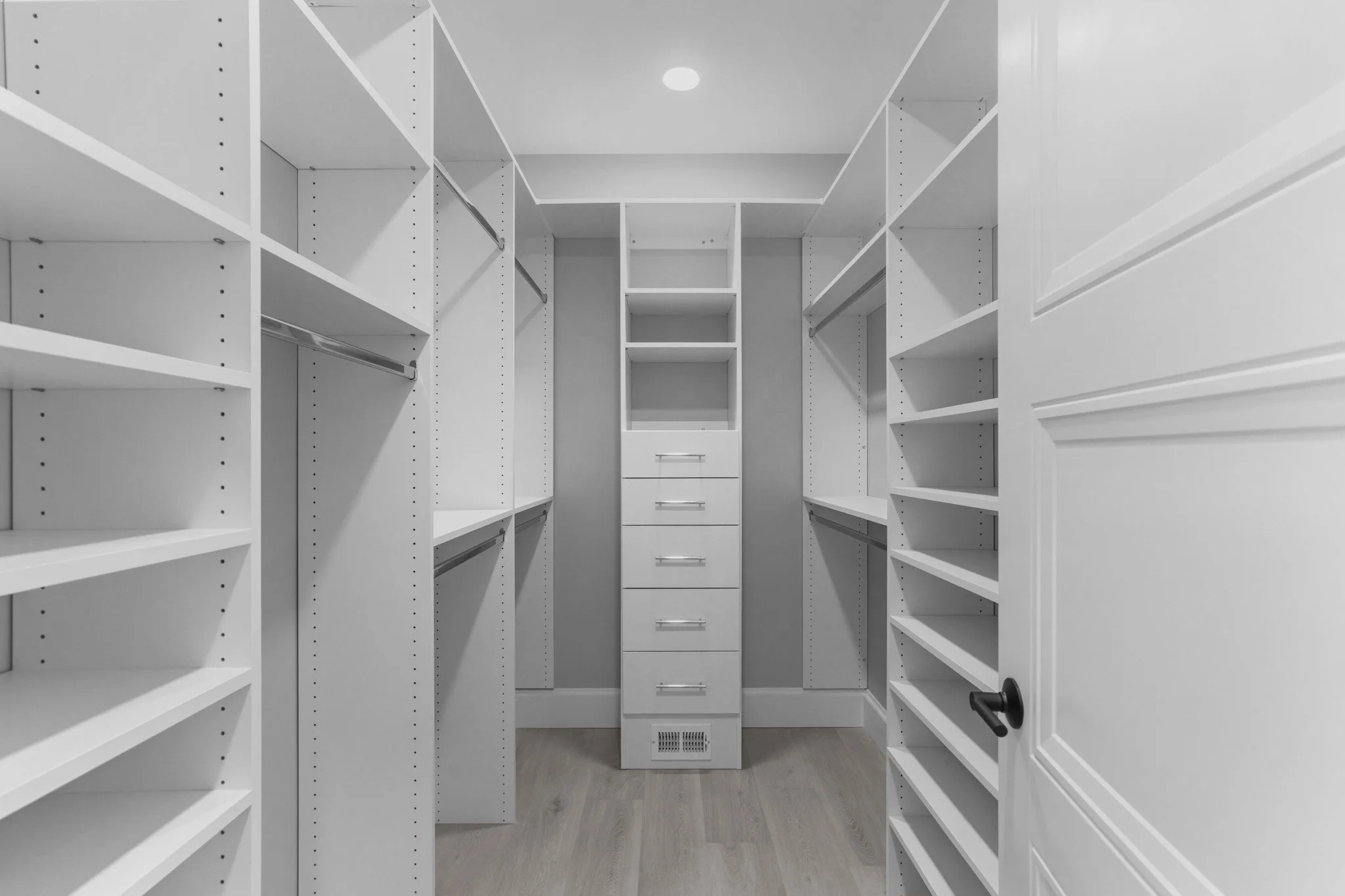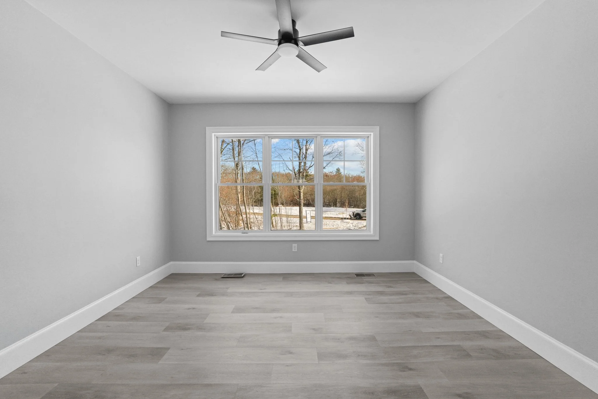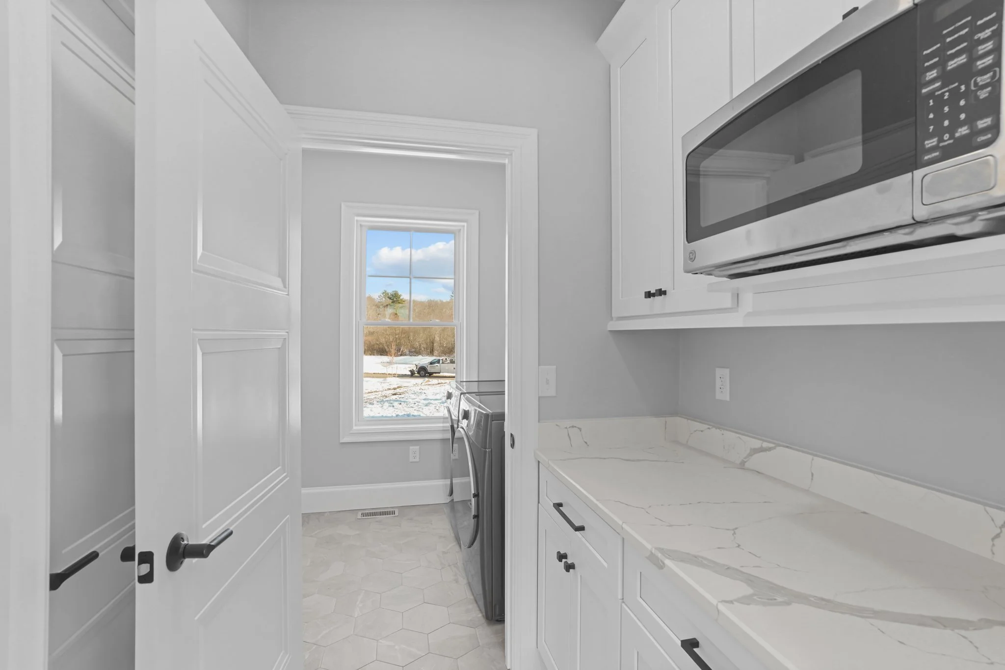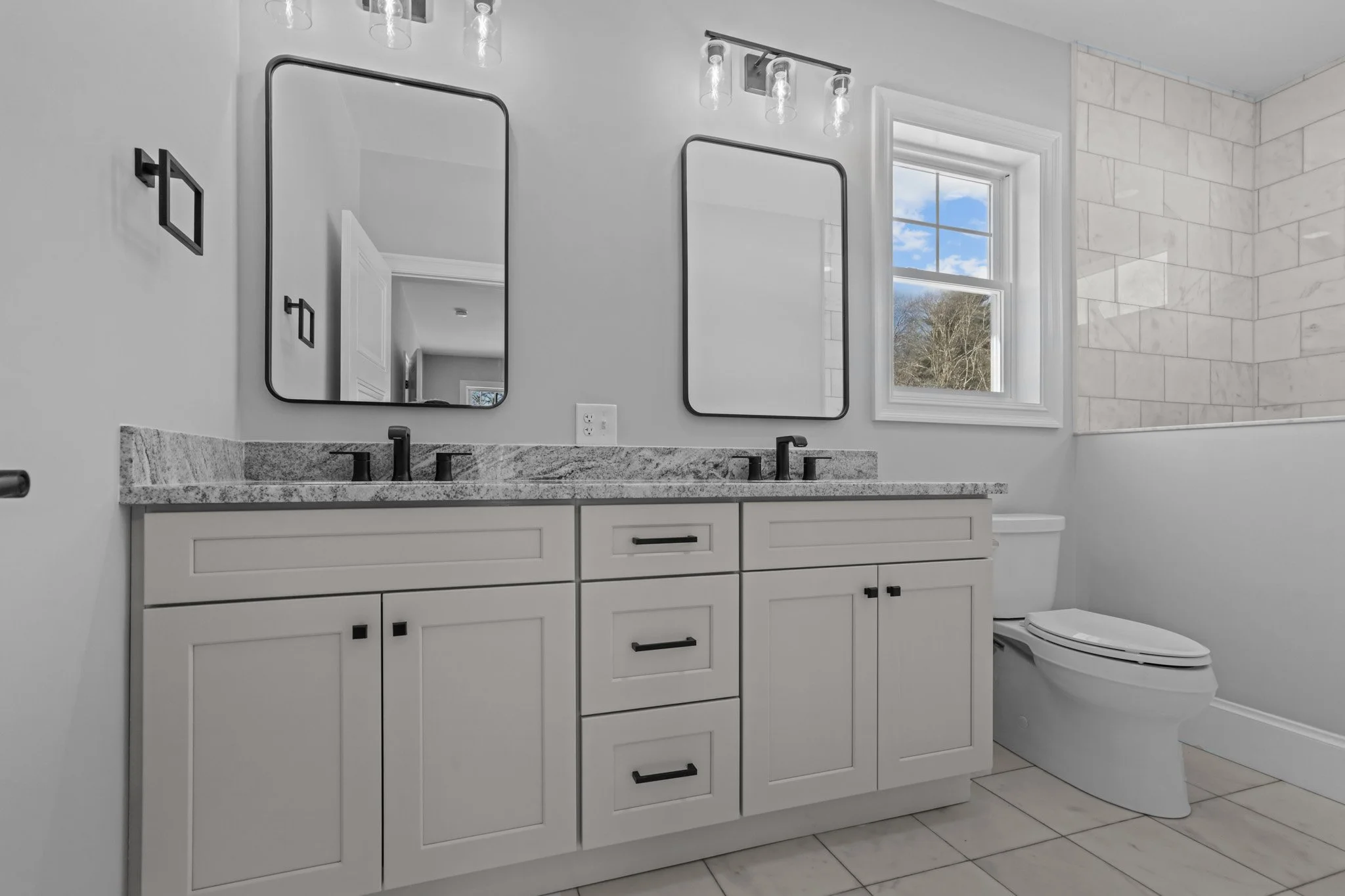 A custom new construction home in Rehoboth, Massachusetts, thoughtfully designed to align with the client’s budget while maintaining a clean, cohesive aesthetic. The home was strategically planned to work with the natural topography of the land—integrating a garage beneath the main living space and maximizing flow throughout. With an open-concept layout, simple architectural detailing, and a restrained monochromatic palette, the design prioritizes clarity, function, and ease of execution without compromising on quality.